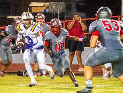 The Raiders began moving the ball through the air. Ben Hockman caught a pass for a 9-yard gain. After a 7-yard run by Walker, Hockman caught a 20-yard pass. Santa Fe’s next pass attempt, however, was picked off by Diston.