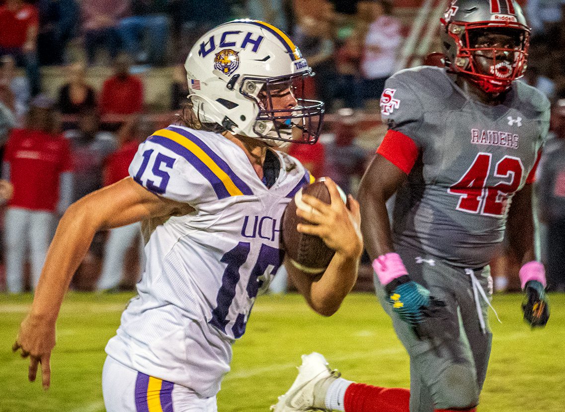 Union kept it on the ground, with Klein calling his own number on back-to-back runs of 22 and 38 yards. The Tigers also benefitted from an unsportsmanlike-conduct penalty on the Raiders.