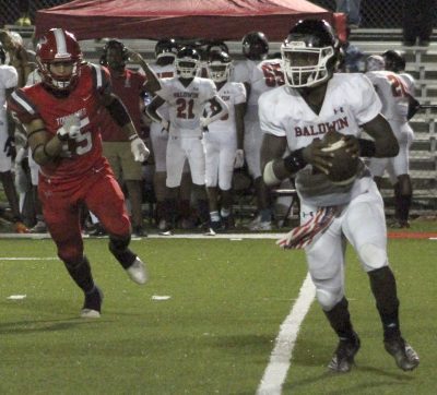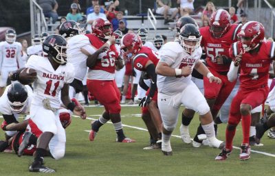 Bradford Head Coach Jamie Rodgers said his defensive players excelled at lining up correctly and relying upon their speed to create havoc. The Tornadoes (1-0) recorded six sacks and made 10 total tackles behind the line of scrimmage, resulting in minus-59 yards. Baldwin (1-1) finished with 6 rushing yards on 26 attempts.