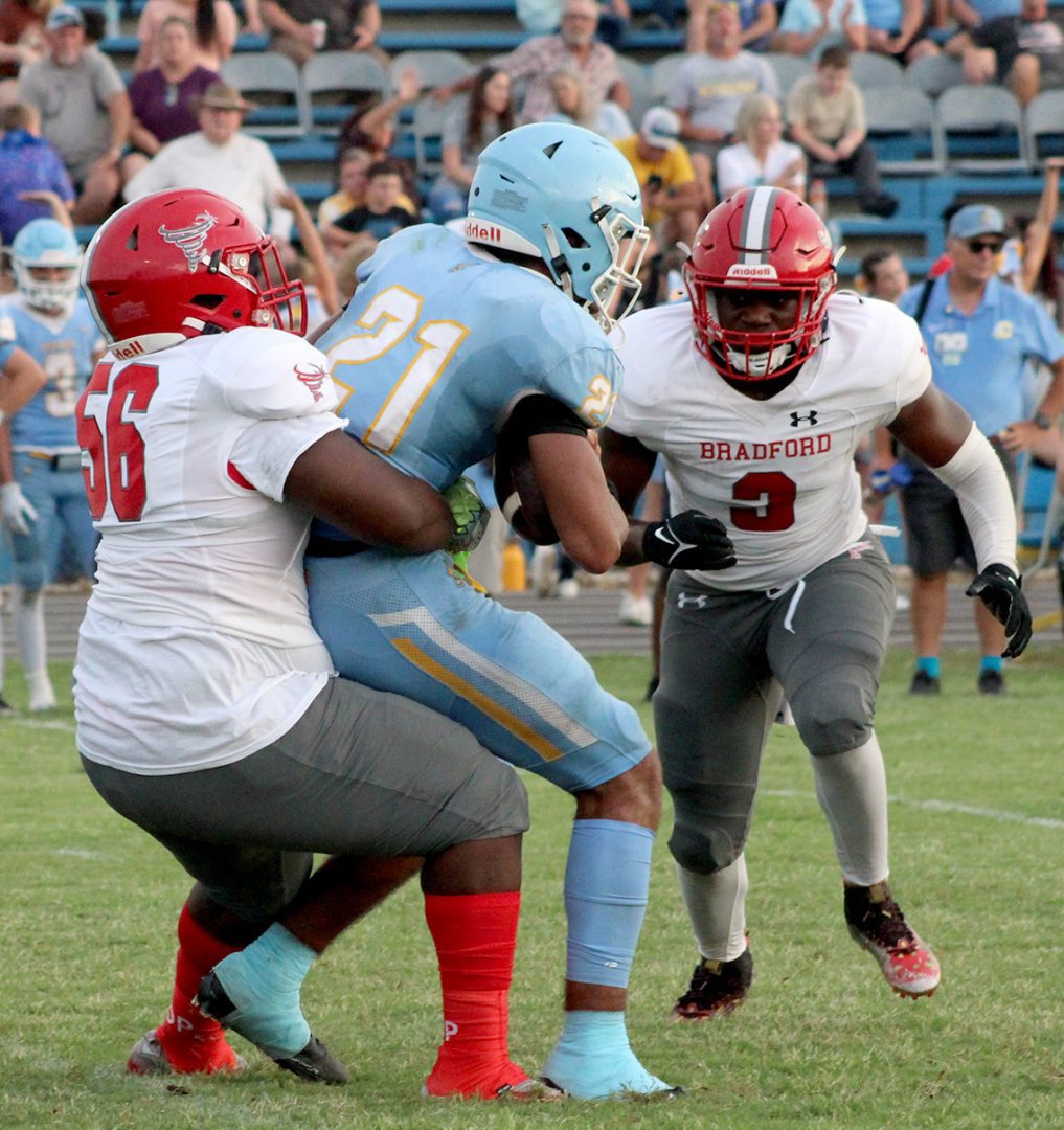 It was then time for the Bradford defense to shine again as Trente Jenkins sacked quarterback Jon Adams, causing a fumble, which was recovered by Barren Walden at the Chiefland 30.