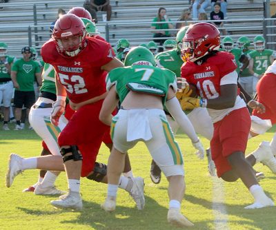 Bradford High School’s football team displayed some of the stingy defensive play fans have become used to in a spring jamboree at Suwannee High School on May 16, with the Tornadoes defeating the host Bulldogs 20-3 in two quarters and then losing 7-6 to Buchholz in two quarters.