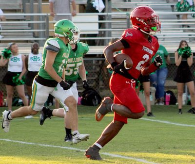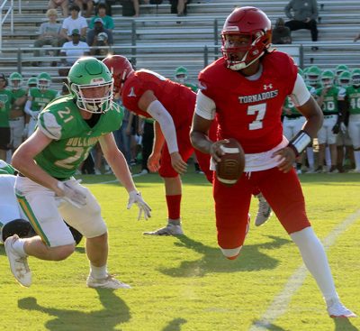 Bradford’s second possession got off to a fast start, with Paulk completing a 17-yard pass to Elijah Lawrence. Gino Addison had runs of 7 and 12 yards to move the Tornadoes to the Suwannee