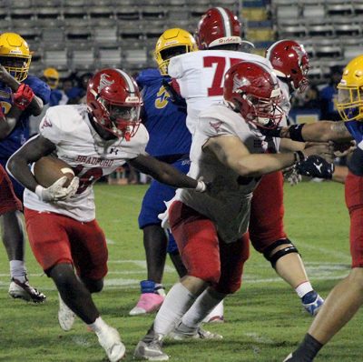 Chase Phillips’ 8-yard punt return had Bradford starting a drive at the Palatka 48. Kamontae Nixon was tackled for a 3-yard loss on a pass play, but running back Keshawn Kennedy had an 11-yard run to set up third-and-2. Addison, who rushed for 106 yards on 16 carries, then ripped off a 15-yard run for a first down at the 25. A holding penalty put the Tornadoes into a long-yardage situation, but Cubbedge hooked up with Elijah Lawrence for a 32-yard touchdown with 5:04 to play in the first half. The score stood at 20-0 after Sapp’s PAT.