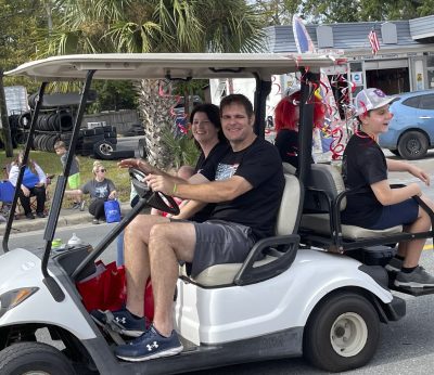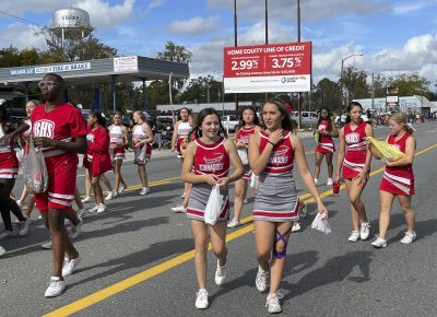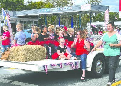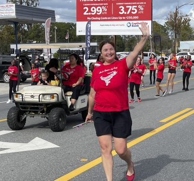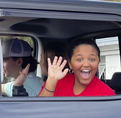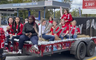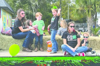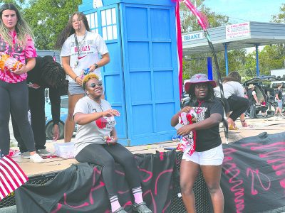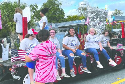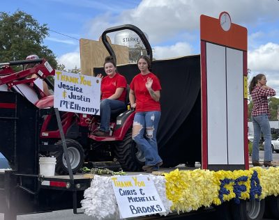 Jordyn Morgan and Mackenzie Demille on the Scarlet Singers float.