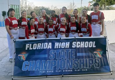 Bradford High School’s competitive cheer team placed sixth in Medium Non-Tumbling at the Jan. 23 Class 1A Florida High School Athletic Association Championships in Lakeland.