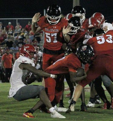 Bradford, which travels to play Middleburg on Friday, Sept. 8, at 7 p.m., was its usual stingy self on defense, making 11 tackles behind the line of scrimmage and limiting the Indians (1-1) to 64 total yards. Plus, the defense prevented Baldwin from scoring, with the Indians’ lone score coming on special teams.