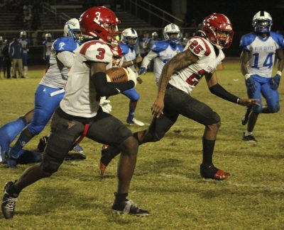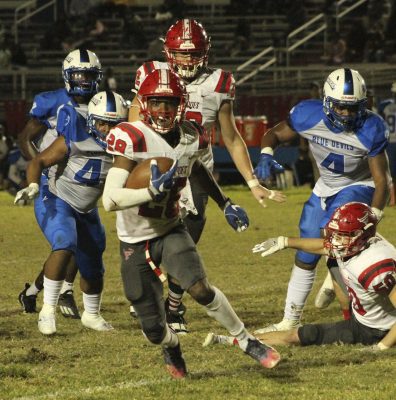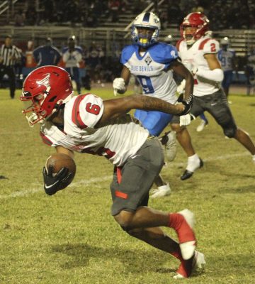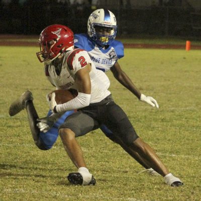Steele had a 12-yard run to start the Devils’ next series, but then found the going tough against the Bradford defense. He was held to no gain on a first-down play and dropped for a 2-yard loss by Sincere Hankerson, Trente Jenkins and others on second down. Chalil Cummings then broke up a pass on third down to force Pahokee to punt.
