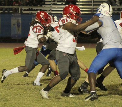 Jones was able to draw Pahokee’s defense offsides to pick up a first down on a fourth-down play on Bradford’s first series of the half. A 7-yard reception by Dae’Jon Shanks and a 2-yard run by Covey set up third-and-1 at the Bradford 41. Pollard, who had 65 yards on