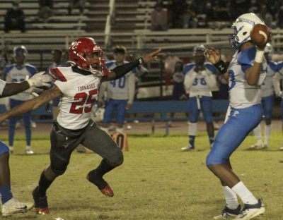 The Tornadoes forced Pahokee to punt on the following series. Bradford’s offense took over at its own 33 with 6:47 to play. Jones, who was 15-of-32 for 245 yards, converted a fourth-and-2 play when he hooked up with Williams (five receptions, 57 yards) for a 22-yard gain to the Pahokee 37. Triavez Hankerson later had a 6-yard reception to set up fourth-and-2 at the 29. Jones’ pass attempt was incomplete, resulting in a turnover on downs.