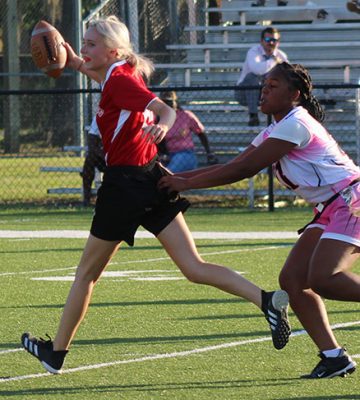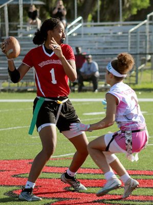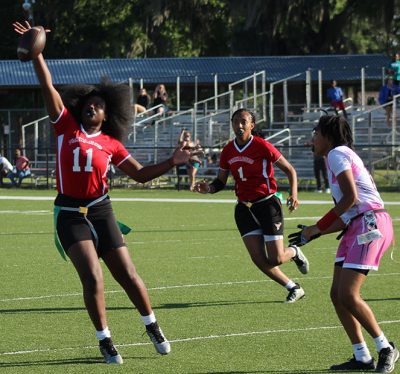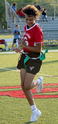 Cherish Bing caught two touchdown passes from Ar’Nayshia Griffin, while the defense never allowed visiting Santa Fe to put itself into any goal-to-go opportunities in the Bradford High School football team’s 14-0 win in the District 4-1A tournament championship game on April 17.