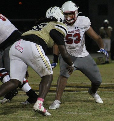 Bradford, which is third in the FHSAA Class 2S power rankings, got a big play from its defense right off the bat as lineman Jorden Daniels forced a fumble on a sack of Oakleaf quarterback Brandon Wallace on the game’s second play from scrimmage. Daniels also recovered the loose ball, giving the Bradford offense possession at the Oakleaf 15-yard line.