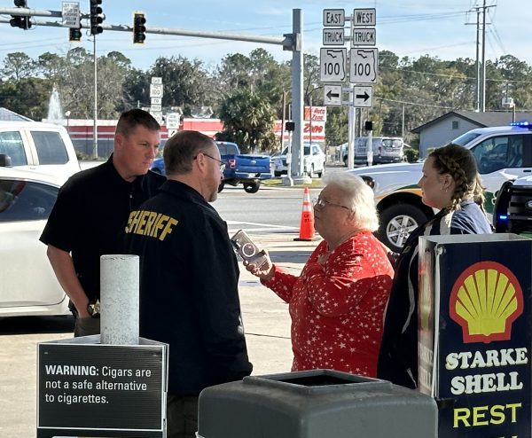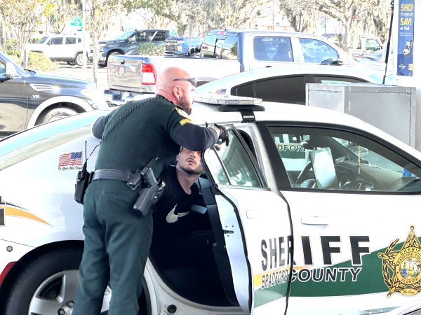 “Apparently, there was some sort of disturbance that was going on inside the store with this gentleman,” he said, referring to a suspect in the back of a patrol car. “The deputy walked in on it, and apparently, a civilian was actually trying to control the—just an unrelated civilian that just happened to be in the store, tried to control the situation. The deputy walked in on it, and then (the suspect) started fighting both deputies and the civilian.”