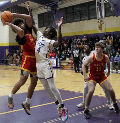 Baker’s Jackson Carver scored four straight points, making two free throws and then scoring on a layup off a Jaeveon Reed assist following a turnover.