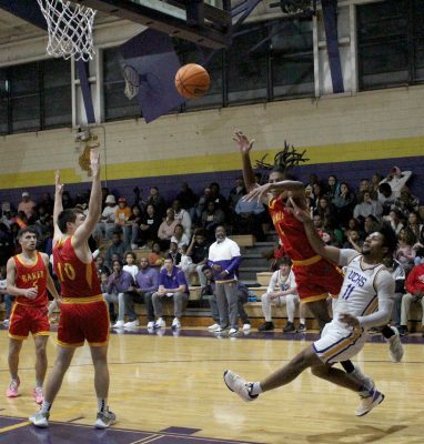 Williams scored to make it 35-35. The Wildcats’ Mitchell then made two free throws before Williams grabbed an offensive rebound, drew a foul and sank a shot while falling backward to even it up again. Unfortunately for Union, Williams was unable to make the foul shot, which was also the case after he drew fouls on his first two baskets of the quarter.