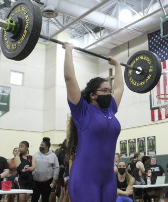 Union County High School’s Jaira Highland competed in the Region 2-1A girls weightlifting finals on Jan. 29 at Daytona Beach’s Father Lopez Catholic High School, finishing with an overall total of 225 pounds.