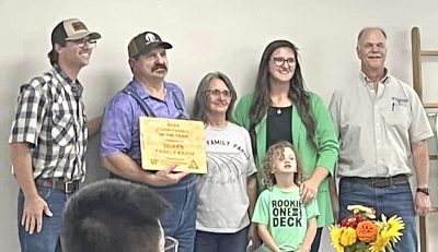 DeValerio then took the podium to announce the presentation of the Union County Farm Family Award. The award was presented Dukes Family Farm by Promised Land Family Ministries Director John Hall, who had nominated the family but did not know the winner until just before he spoke.