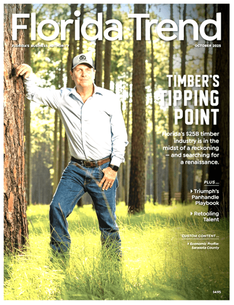 Avery Roberts, the President of the Florida Forestry Association, was featured on the cover of the October Florida Trend magazine.
