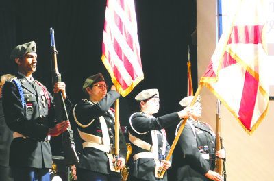 The UCHS JROTC color guard preformed with military precision presenting the colors of the armed forces. Representing the Army, Navy, Air Force and Marines. The color guard members were: Cadet Command Sergeant Major Adam Ali, Cadet Captain and Color Guard Commander Cheyann Leshuk, Cadet Sergeant Syann Malone, Cadet Sergeant and Cadet Captain Emma Fulton.