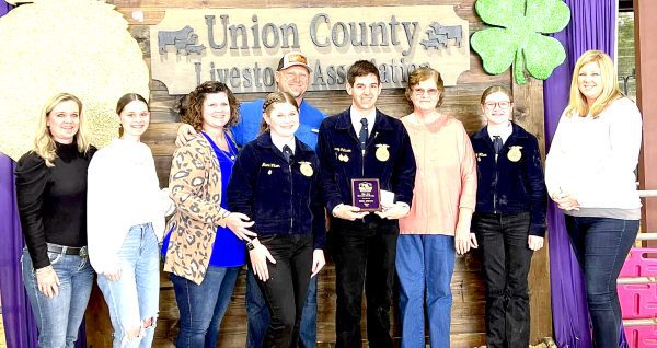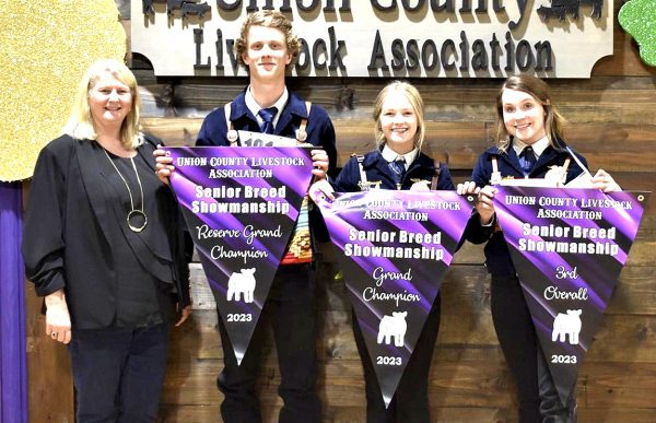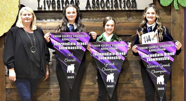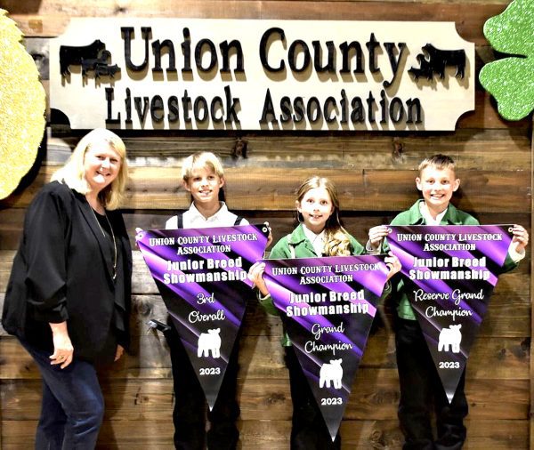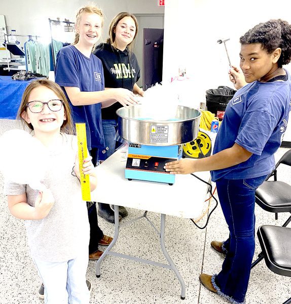 Union County 4-H’ers worked behind the scenes to help make the Livestock show and sale a success. Here, Grace Box, Celia Elixson, Addyson Kelley and Alayah Jefferson were preparing cotton candy for sale at the 4-H concession.