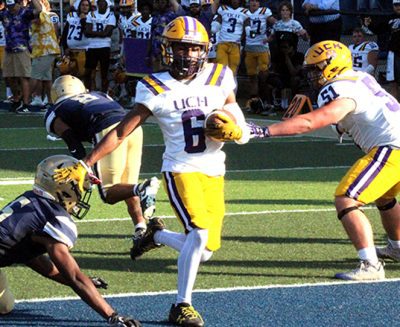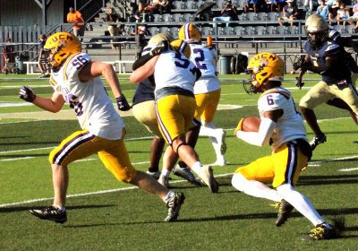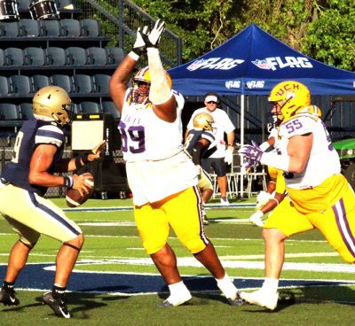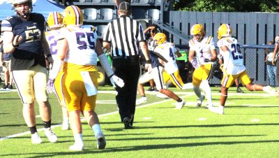 Jesse Chaiken grabbed two interceptions, returning one for a touchdown in Union County’s spring scrimmage against Jacksonville’s University Christian on May 16.