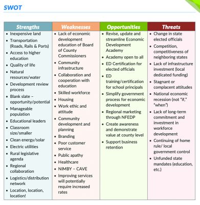 Having encouraged the city of Starke to do the same for years, Commissioner Carolyn Spooner wants a fresh start, assembling all the stakeholders to assess the county’s strengths, weaknesses, opportunities and threats. With that information, or SWOT analysis, in hand, she says they can map out the future.