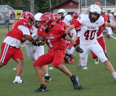 Bradford got off to a quick start against winless Bishop Kenny, as Eden Carabello caught a pass from Aldridge on the game’s first play from scrimmage and took it the distance for a 48-yard touchdown to put the home team up 6-0. The two-point conversion attempt was no good.
