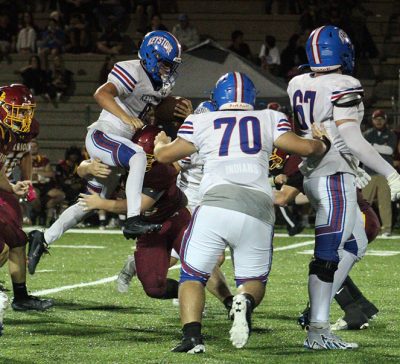 Quarterback Hunter Crumpton led the Indian ground game with 64 yards on 32 carries. He also completed one pass to Luke Bacorn for 6 yards.