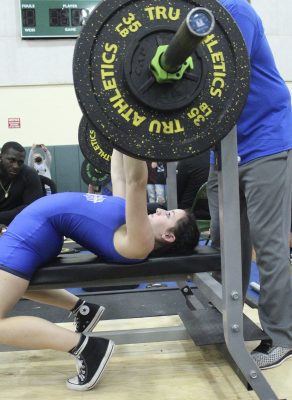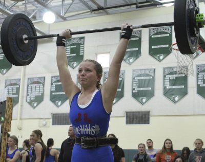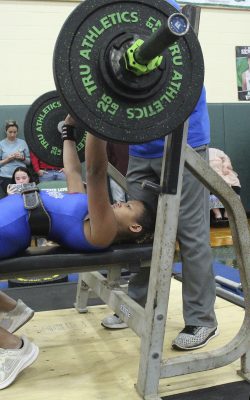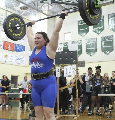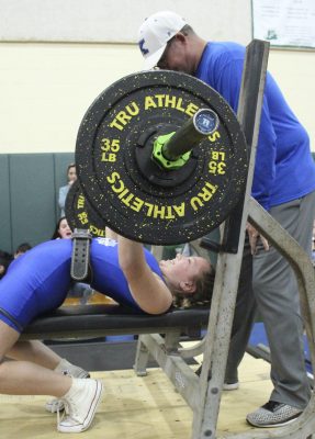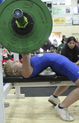 Also competing for Keystone were Heidi Knapp, who had a 175 total (95, 80) in the 119 class, Schiley Starling, who had a 160 total (85, 75) in the 119 class, Kathryn Brossette, who had a 210 total (110, 100) in the 129 class, Chloe Still, who had a 195 total (95, 100) in the 139 class, Kenly Chitty, who had no official total in the 154 class (she didn’t have a successful bench-press attempt) and Harmony Geiger, who had a 235 total (120, 115) in the 169 class.