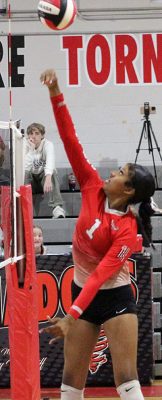 Bradford was struggling in what would be the final set and led only 13-12 before scoring four points with Ky’lee Johnson serving. Burkhalter and Hudgens each had a kill in helping the Tornadoes go up 17-12.